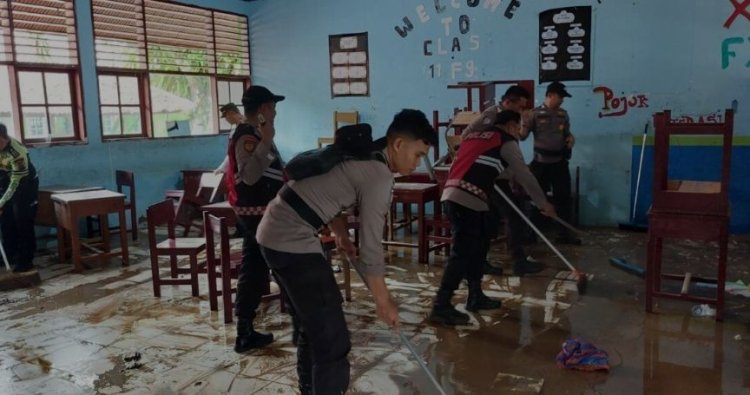 Di titik rawan, anggota Polsek juga melakukan patroli air serta memantau potensi longsor lanjutan.