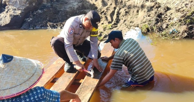 Jembatan darurat tersebut dibangun berkat inisiasi dari Bhabinkamtibmas dengan para pemuda serta masyarakat setempat.