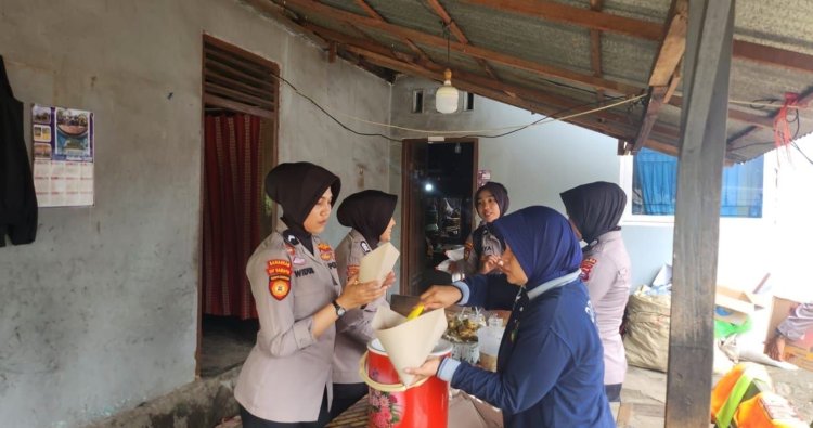 Sejak pagi, para Polwan terlihat sibuk memasak dan menyiapkan berbagai menu makanan siap santap. Makanan tersebut kemudian dibagikan kepada warga yang mengungsi maupun yang masih bertahan di rumah akibat akses yang terhambat banjir.