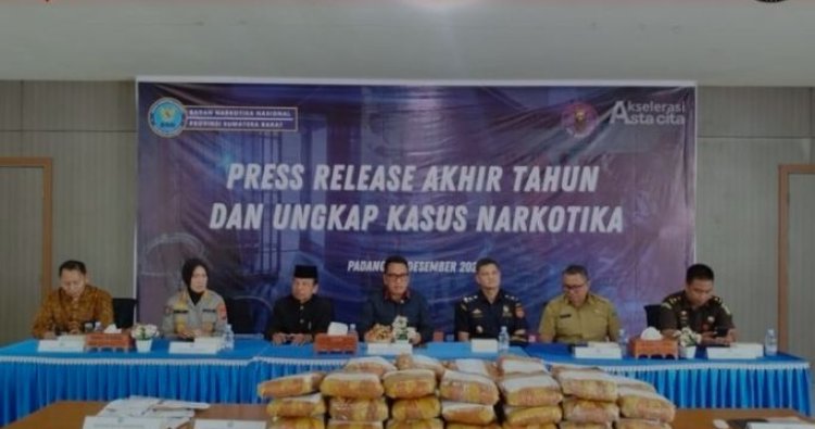 Press release akhir tahun BNNP Sumbar turut dihadiri unsur pemerintah daerah, tokoh adat, Bea Cukai, dan Kejaksaan sebagai bentuk komitmen bersama memutus mata rantai peredaran narkoba di Sumatera Barat.