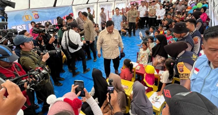Presiden Prabowo tiba sekitar pukul 09.02 WIB melalui helipad Lapangan Sepak Bola Ipensi Ngungun, kemudian melanjutkan agenda ke Posko Pengungsi SD 05 Kayu Pasak Palembayan.