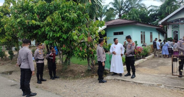 Dharmasraya, Sumbar — Polres Dharmasraya melaksanakan pengamanan perayaan Natal di Rumah Singgah Stasiya Anastasia, yang berlokasi di Kampung Baru, Nagari Suka Banua, Kecamatan Pulau Punjung, Kabupaten Dharmasraya, Kamis (25/12/2025).