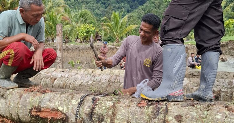 Dalam aksi gotong royong ini, pohon kelapa dimanfaatkan sebagai material utama untuk membangun jembatan darurat. Hasilnya, akses kendaraan roda dua maupun roda empat kini sudah bisa kembali melintas dengan aman.