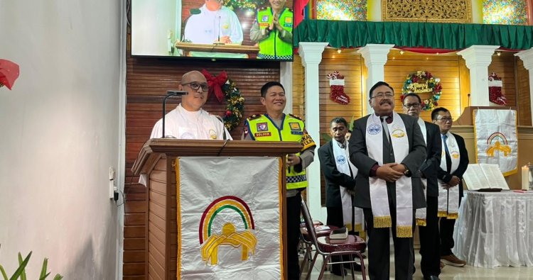 Pada kesempatan tersebut, Wakapolda Sumbar juga menyampaikan ucapan selamat Natal kepada seluruh jemaat yang hadir.